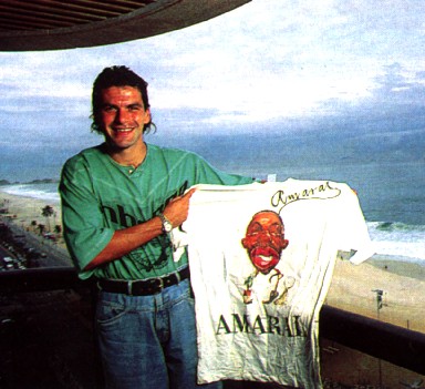 En 1996 la revista El Gráfico realizó un informe para saber en qué invertían su dinero los futbolistas. Uno de los elegidos para ilustrar la nota fue el Avi Alejandro Mancuso, que desde su amado Brasil había desarrollado un negocio bastante particular: vender remeras con caricaturas de sus colegas. No solo el producto presentado dejaba bastante que desear (arrugado y con un dibujo de Amaral horrible), sino que además la pilcha del dueño de la empresa era por lo menos decadente. Jeans enormes y casi a la altura del ombligo, con remera gigante por dentro y un estampado que por suerte alcanzó a tapar involuntariamente para la foto. Ni el paisaje ayudó. ¡Pobre Mancu!
