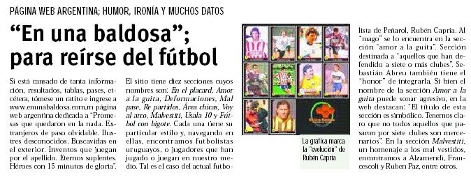 El viento del Río de la Plata trae buenas noticias relacionadas al papel. El diario plan B, de Montevideo, publicó en la edición de hoy una reseña sobre En Una Baldosa, donde se rescata, entre otras cosas, la evolución del Mago Capria en Amor a la Guita.