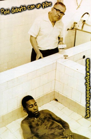 No sé quien era más sospechoso, si Pelé o ciertos fotógrafos que lo seguían. Está ésta foto, la del baño junto a Beckenbauer, otra bajo la ducha en bolas agarrándose el zodape…