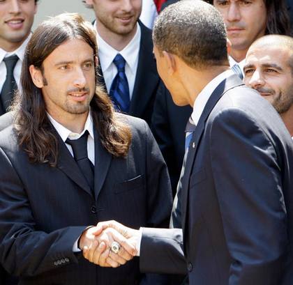 – Mientras algunos se rompen en el lomo en la Primera C, soportando escupitajos, puteadas y las bicicleteadas de los dirigentes que nunca pagan, otros baldoseros se codean con las personalidades más importantes del Mundo. Mucho se habló del encuentro entre Guillermo Barros Schelotto con Barack Obama, pero poco se dijo de la rutilante presencia del otro argentino del Columbus, Diego Gino Padula. El ex River y Huracán también saludó al Presidente de los Estados Unidos y hasta tuvo tiempo de sacar una camarita digital a 10 centímetros de él, sin que se le arrojaran 4 hombres de seguridad para desactivar la posible bomba.