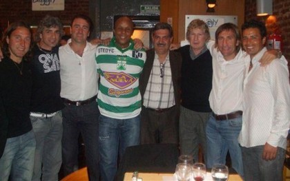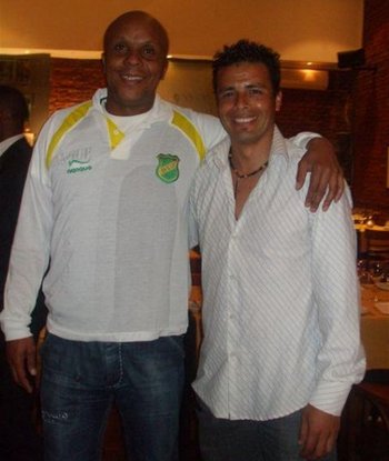 – La foto es engañosa (?), pero el Doctor Khumalo no metió mal pase a Defensa y Justicia. Simplemente vino a la Argentina como embajador del Mundial Sudáfrica 2010, y aprovechó para reunirse con sus ex compañeros de Ferro, entre ellos el grosso de Zapatilla Sánchez.
