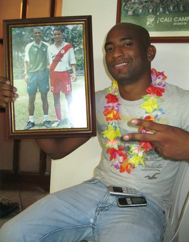 La foto es con Sergio Angulo, legendario delantero colombiano, hoy entrenador en el Deportivo Cali.