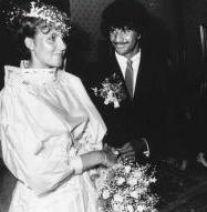 Sí señor, esa es un traviesa ochentosa! Observesé que en esa época no se había popularizado la inserción de siliconas, se prefería el chato natural. Además, la bata con el cuello alto que viste la novia es para disimular la nuez de Adán. Lo mismo que el ramo de flores que le sirve para disimular la portentosa chota delante del juez de paz. Gracias!