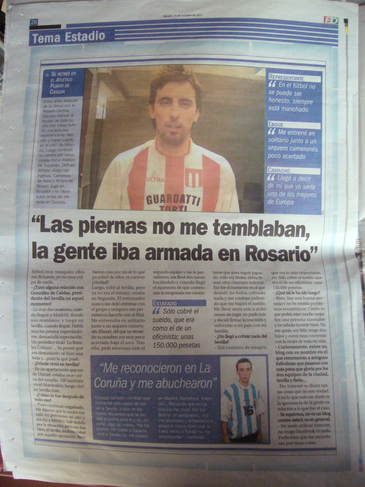 – Gracias a los amigos del blog Colussos Contra Kukletas nos enteramos que el gran Cristian Colusso le dio una entrevista al periódico Estadio Deportivo, donde recordó su mala experiencia en España, cosa que no le ha permitido, a pesar de los años, volver a pisar Sevilla. Pueden ver acá una de las páginas completa y tratar de comprender, más allá de las cuestiones futbolísticas, por qué le fue pésimo al Chiri en Europa.
