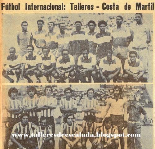 «Cuando corran los años, acaso pueda parecer sólo una anécdota deportiva: pero lo cierto es que el 23 de febrero de 1980, el equipo superior de Talleres, nuestro Talleres de Remedios de Escalada, se midió con la selección de la República de Costa de Marfil, conjunto africano de gira en estas tierras, con el ánimo de foguearse y aprender –según expresaron. Jugaron 5 partidos, y en el último dieron oportunidad a Talleres, la alternativa de una disputa internacional, algo insólito y desacostumbrado para la divisa albirroja. Existe sólo un antecedente, hace mas de 50 años, cuando Talleres enfrentó a un combinado uruguayo en Escalada, equipo en el que jugó Luis Zubizarreta