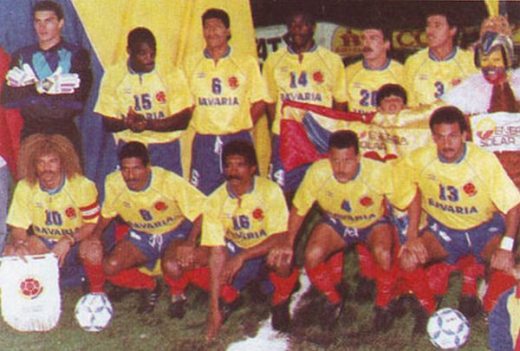Aquel año Colombia sorprendió a propios y extrañas al mostrar, en un par de amistosos, el sponsoreo de la cervecería Bavaria en el frente de la camiseta. Unos meses más tarde, como recuerda el blog Bestiario del Balón, la federación tuvo que pagar la lógica multa de la FIFA.