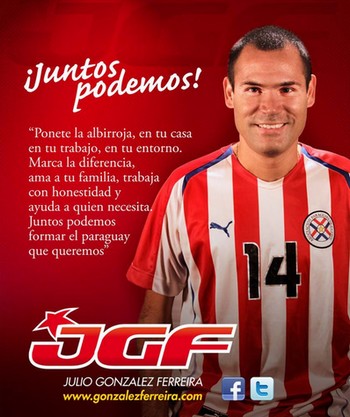 Este año lanzó su candidatura como Diputado Nacional para el 2013, representando al Partido Colorado. Desde su sitio web oficial, su página en Facebook y su cuenta en Twitter, el ex futbolista le pide al pueblo que lo acompañe. Por ahora tiene pocos seguidores. Esperemos que con esta nota le estemos dando una mano.