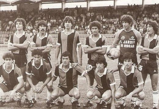 2. El bigotudo es el paraguayo Heriberto Correa, ex Racing, Platense y seleccion Argentina. El arquero es Anhiello, la publicidad de su buzo Topper es de la marca de Oscar Tubio, el tipo con peor gusto de la historia argentina en cuanto a diseñar indumentaria deportiva