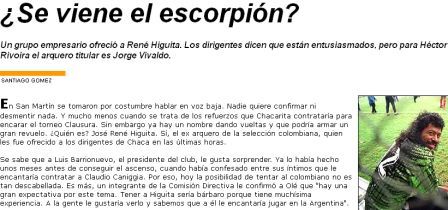 Una utopía que muchos hinchas del Funebrero creyeron. Porque los contactos existieron, entonces daba para ilusionarse. René Higuita había sido ofrecido por un grupo empresario y la idea gustó. “Conversamos con la gente de Colombia por el pase y ahora lo que queda es seguir charlando la semana que viene para ver si se concreta. A mi me gusta, me parece un gran arquero, de una enorme categoría y mucha experiencia internacional”, llegó a decir Luis Barrionuevo, presidente de Chacarita. Sin embargo, por las altas expectativas económicas del jugador el sueño se vería frustrado. En un principio quería cobrar un millón de dólares por toda la temporada. Cuando se enteraron, en San Martín a todos se les pusieron los pelos de punta. Y aunque la cifra después se redujo en un 50%, el propio Barrionuevo se encargó de bajar la cortina. «No nos podemos endeudar. Nos hubiese gustado tenerlo pero de esta manera no se puede».