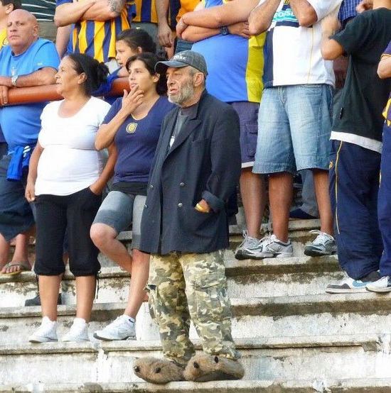 si es por las pantuflas, clap , clap , clap hay q estar chapa p salir asi y entrar a una cancha ni hablar, rosario da para todo.