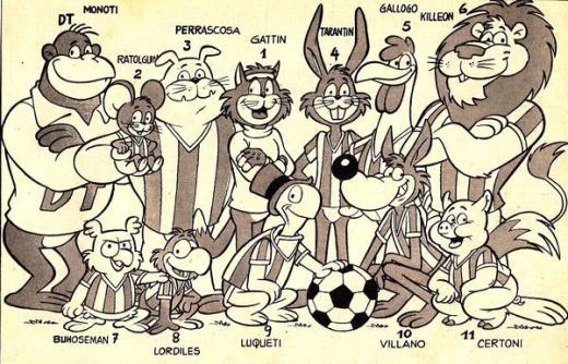 Sin internet, televisión por cable, ni la Tiki-Tiki (?), hacía fines de los años 70 los niños futboleros de nuestro país no encontraban demasiadas variantes para entretenerse sin romperles las bolas a los padres. Fue así como, cubriendo esa necesidad y subiéndose al fervor nacional en los meses previos al Mundial ’78, surgió la revista Gattin y el equipo, una sátira a la selección argentina de Menotti, representada por animales de todo tipo, gracias al ingenio del dibujante Jorge Toro.