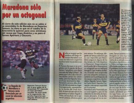 En su edición del 15 abril de 1997, la publicación informaba que importantes directivos del Deportes Temuco se encontraban en Buenos Aires negociando la llegada de Maradona. Esto se haría posible gracias al aporte de un canal de televisión argentino, que a cambio adquiriría los derechos para transmitir un octogonal que jugaría Diego con el equipo chileno.