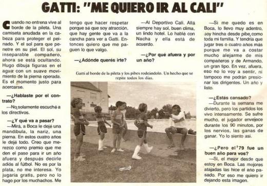 Comenzaba el año 1980 y Hugo Orlando Gatti encendía la máquina de humo para la revista El Gráfico: «Mirá, a Boca le dejé una mandíbula, la nariz, una pierna. En estos cuatro años le dejé todo. Creo que merezco como premio que me den el pase para ir un año afuera y después decirle adiós al fútbol. No es por la plata, no me interesa. Yo jugaría gratis, pero no lo hago por los muchachos. Me tengo que hacer respetar porque sé que soy atracción, que hay gente que va a la cancha para ver a Gatti. Entonces quiero que paguen lo que valgo».