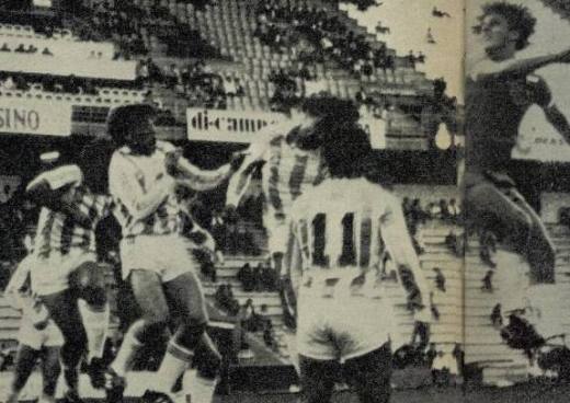 Ante unos 10.000 espectadores cómodamente ubicados en el estadio José Zorrilla, los locales salieron a la cancha con Carlos Fenoy; Sánchez Vallés, Pastor, Pepín, Santos; Duque, García Navajas, Minguela, Yáñez; Oviedo y Alonso. Los argentinos formaron con Pumpido, Messina, Jorge, Ruggeri, Alves; Insúa, Martino, Gasparini, Rinaldi (en la imagen, tratando de cabecear entre cuatro rivales); Gareca y Urruti. En el segundo tiempo llegó la avalancha de modificaciones: Valladolid cambió a más de medio equipo y en Argentina ingresaron Bordet, Costas, Centurión y Monzón.