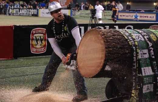 Además, los estadounidenses contaban con un particular personaje llamado Timbers Joey, cuya función era la de arengar a su público mediante el uso de su motosierra. Sí, así como leen. El bueno de Joey, además de cantar y alentar a pocos metros del rectángulo de juego, también hacía su mayor gracia: cortar una rebanada (?) de madera cada vez los Timbers llegaban al gol.