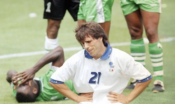 En aquella accidentada Primera Ronda para Italia -quien finalizó tercera en su grupo por detrás de México e Irlanda- Zola no tuvo ni la más remota posibilidad de ver acción, perjudicado por los avatares de un equipo que andaba a los ponchazos. Cuando pensábamos que nos íbamos a quedar con la leche (?) de ver un cacho de su talento, la chance le llegó en el partido por Octavos de Final contra Nigeria. Y aquello quedaría grabado a fuego en la historia