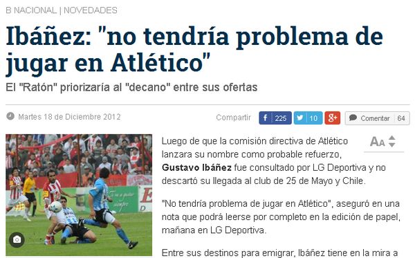 Su pase al Decano no sólo fue un deseo del jugador, ya que en una reunión de la comisión directiva de Atlético, se llegó a tratar el tema. Ibáñez, mientras tanto, seguía metiendo fichas, imaginándose a sus futuros compañeros: «La camiseta número 7 es del Pulga (Rodríguez), yo me quedo con cualquier otra, no tengo ningún problema». Buen profesional (?).