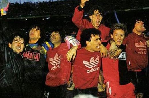 Como todos saben, las 3 tiras dominaron el fútbol argentino desde mediados de los 80, hasta la mitad de los 90. De hecho, desde el título de Newell’s en 1988, hasta el título de Vélez que cortó la racha en 1993, todos los equipos se alzaron el torneo vistiendo la marca alemana. Incluso, ese equipo de Bianchi arrancó el torneo con adidas y a mitad de camino comenzó a utilizar Umbro, marca de moda, para el club moda de esa época (?).