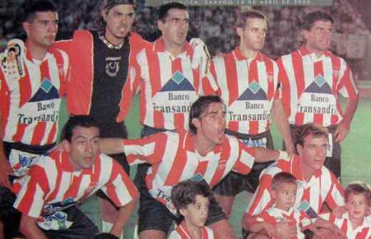 Igual grosso equipo si así jugando con 8 llegaron a dos finales…El de abajo que se tiene que recalcar los hombros para abrazar a esos dos muertos creo que es el gran Ricardo Dillon que como D.T. se fumó miserablemente en un par de años su prestigio bien adquirido como artillero.
