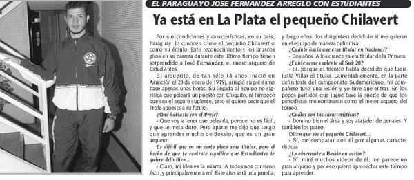 José Fernández fue uno de los proyectos de arqueros con más futuro de su época.. junto con Justo Villar prometían llevar seguridad por largos años al arco de la Albirroja ..