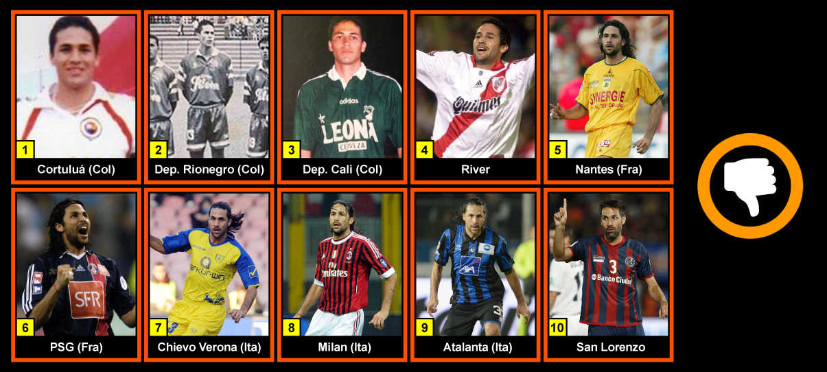 Del listado rescato algo: ¡Cómo se vino abajo el fobal tano! Y no lo digo porque Yépez haya llegado a defender al Milan (o lo que quedó de tal club) sino porque siendo ya veterano (y casi una momia) se mantuvo vigente en la Serie A.