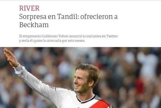 La bomba de humo fue activada por Guillermo Tofoni, un empresario que en enero de 2014 aseguraba que River Plate estaba a punto de sumar al inglés a su plantel. “La llegada de Beckham está cerrada en un 80%», fue la frase con la que sacudió al mercado de pases. Y añadió: “Sería una movida de marketing espectacular. En todo el mundo se hablaría de River. Y otro detalle. ¿Sabés cuántas mujeres se acercarían al Monumental para verlo jugar? ¿Cuántas camisetas se venderían? Un montón”. Además, lo económico no iba a ser impedimento, ya que adidas, en teoría, se iba a hacer cargo de los gastos.