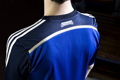 adidas Argentina presenta la nueva camiseta alternativa oficial de la Selección Argentina de Fútbol, con un diseño que reúne varios tonos de color azul en combinación con el dorado, ubicado tanto en el escudo, como en las cintas laterales y en la espalda. En esta camiseta adidas Argentina plasma la pasión del pueblo argentino por el fútbol y el profundo respeto por sus símbolos e historia; y ratifica su apoyo incondicional ante el gran desafío de la Copa del Mundo Brasil 2014.