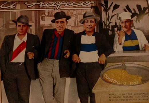 Ya en 1933, la revista El Gráfico hizo una producción fotográfica que representaba la lucha del campeonato en una pizzería. En ella se podía observar a Francisco Varallo, jugador de Boca Juniors, preocupado porque sus colegas de Gimnasia, San Lorenzo y River le afanaran la fainá. Minella, como era del Lobo, estaba segundo, obvio (?).