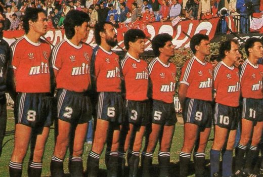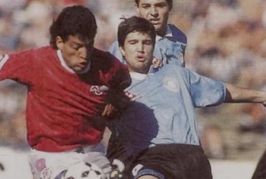 La imagen pertenece al encuentro en el que Independiente venció al Deportivo Armenio y se quedó con el título del Campeonato de Primera División 1988/89, aquel de las definiciones por penales. En este caso, lo importante es que sirve para ver la diferencia en la vestimenta entre el número 10 y el resto del equipo.