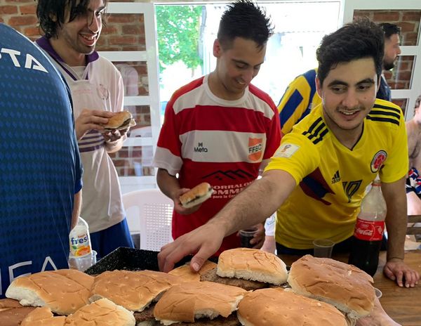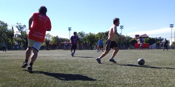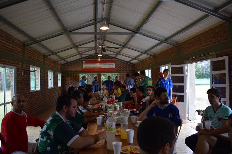 Una vez en el predio, algunos enfilaron para la cancha, otros preguntaban a qué hora abría la cervecería y los más sensatos se reguardaban en la sombra proporcionada por el quincho, bien cerquita de la parrilla. Al rato, empezaron a salir las primeras hamburguesas, hechas con carne grado F, acompañadas de bebidas que aún no habían alcanzado el frío ideal. Nada de eso le importó a la horda de hambrientos muchachos, que atacó sin piedad a los alimentos.