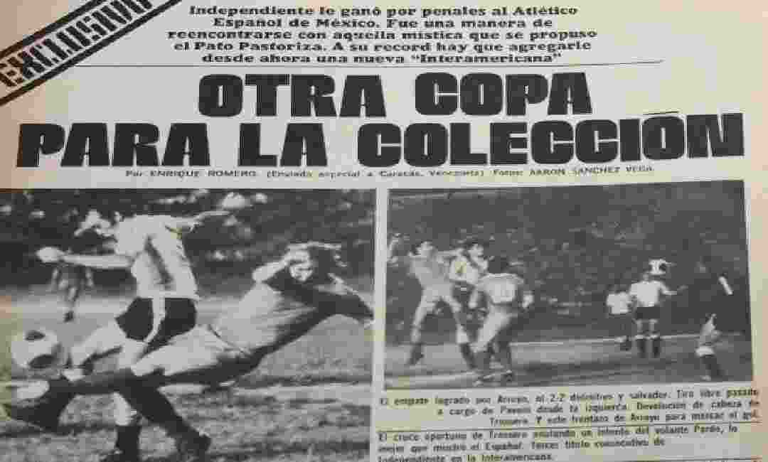 La tercera y última vez que Independiente participó (y ganó) este trofeo fue en 1976, cuando su rival fue el Atlético Español de México. Lo llamativo de esta edición fue que ambos enfrentamientos fueron en terreno neutral: se jugaron en el Estadio Olímpico de Caracas, Venezuela.