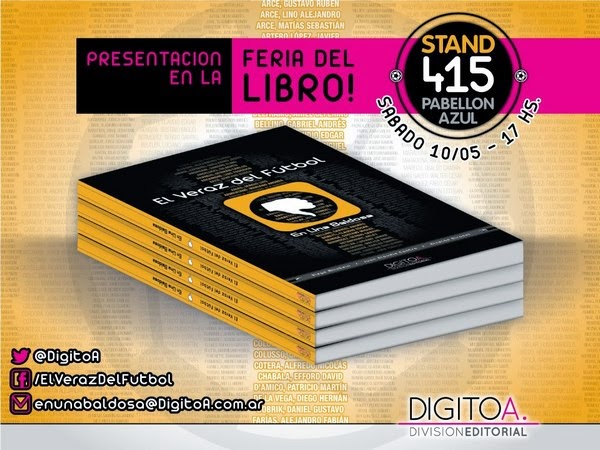 En el pabellón azul de la 40º Feria Internacional del Libro de Buenos Aires, sí, ahí vamos a estar. Este sábado a las 17, en el stand 415, presentaremos El Veraz del Fútbol, nuestro primer libro, que compila las tristes y divertidas historias de los futbolistas que más nos emocionaron en los últimos 30 años.