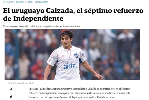 El séptimo refuerzo de Independiente es Maximiliano Calzada, uruguayo de 24 años, ex Nacional. pic.twitter.com/xqwv9u6qx5