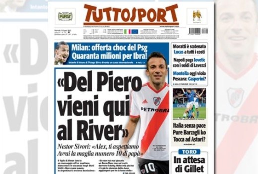 “El fútbol latino es mi tipo de juego. Boca y River son dos grandes clubes”, había comentado alguna vez el Pinturicchio. Esa declaración fue suficiente para que Néstor Sívori le pidiera desde la tapa del mencionado periódico: «Del Piero, vení acá, a River».