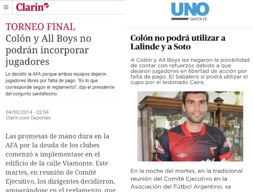 Sin embargo, el mismo día que Soto se unía a las prácticas con el plantel, el Comité Ejecutivo de la AFA resolvía que Colón y (casualmente) All Boys estaban impedidos de incorporar refuerzos, como castigo por haber dejado jugadores libres por falta de pago.