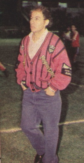 Con tal de ponerse algo rojo, el «Bocha» se lo calzó y lo lució en Necochea ,en 1992, dirigiendo a Independiente.