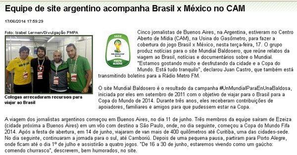 – El hecho de estar dando vueltas por Brasil llamó la atención de varios medios locales, especialmente cuando nos veían con una pantera rosa. Eso motivó algunas notas, como esta de Porto Alegre que linkeamos acá. Qué bien que falamos portugués (?).