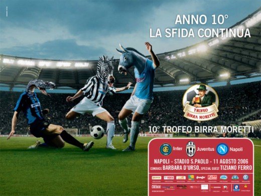 Entre 1997 y 2008 la marca fue sponsor del Trofeo Birra Moretti, un campeonato triangular en el que se jugaban partidos de 45 minutos, cuyas primeras ediciones fueron en Udine y más tarde se trasladaron a Bari (de 2000 a 2004) y Nápoli (de 2005 hasta su desaparición). Juventus se quedó con el título en 6 ocasiones, Inter en 3, mientras que Nápoli, Udinese y Parma se coronaron una vez cada uno.