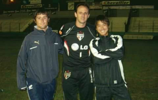 A la derecha con Rogério Ceni, en la previa del choque entre Estudiantes LP y São Paulo por la Libertadores 2006.