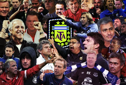 Las bufandas también se popularizaron en las tribunas argentinas, aunque no creo que jamas incluyan el nombre de un DT, a menos que el hincha quiera arriesgarse a comprar una nueva cada cinco fechas.