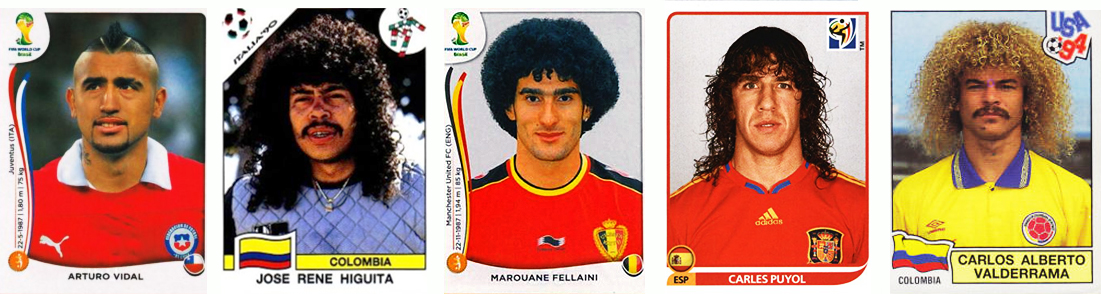 Yo, como mujer, recuerdo particularmente el furor por el mowhak de Beckham y el flequillo + pelada de Ronaldo (lamentablemente ninguno llego a ser retratado por Panini), pero luego de una breve encuesta entre muchachos, note que la inspiración puede provenir de las fuentes mas diversas.