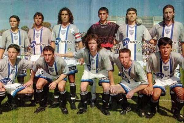 Lucen esa casaca alternativa, acompañada con pantalones blancos y medias negras marca adidas: Torresi, Daniel Peinado, Rafael Iglesias, Torrico, Alejandro Abaurre y Nasta (parados). Pablo Páez, De la Vega, Canedo, Caiafa y Azcurra (agachados). Godoy Cruz realizó una digna tarea aquella temporada, aunque la indumentaria nunca estuvo a la altura.