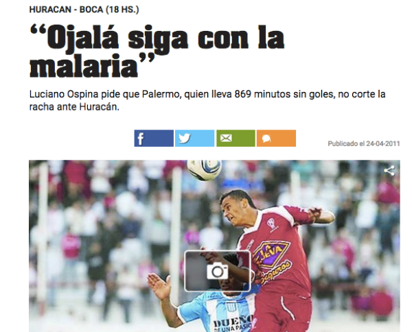 -Nunca se sabe. Me preocupa mucho que Palermo nos haga un gol justamente a nosotros y corte el mal momento que arrastra. La idea es mantener el arco en cero. Ojalá que él siga con la malaria y no convierta este domingo.